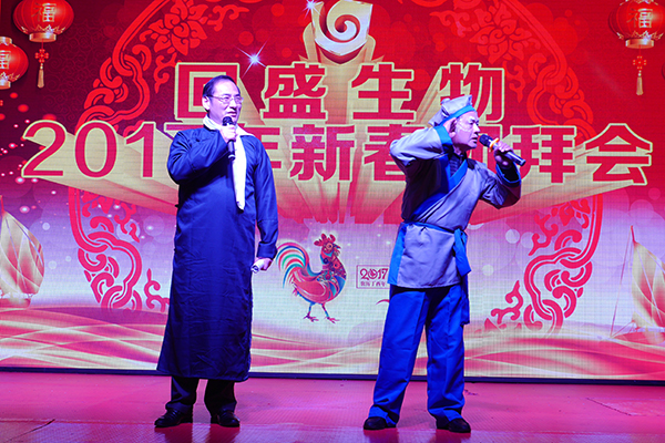 2017年回盛生物新春團拜會在金來亞國際酒店舉行。員工自發(fā)編排的舞蹈、小品、相聲等節(jié)目贏得員工們的陣陣掌聲,現(xiàn)場氣氛活躍,笑聲不斷,精彩紛呈。